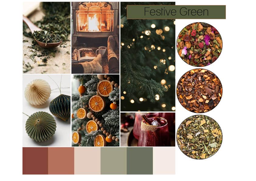 Daar is ie dan, dé thee adventskalender van 2025! Voor het 9e jaar op rij maken we dit mooie product, inmiddels geliefd bij velen. Dit jaar zullen de sfeer en smaken te maken hebben met het nieuwe thema ‘Festive Green’. Het moodboard laat een beetje zien hoe alles gaat worden. *Let op, de foto’s zijn een inspiratie van een eerder jaar, de zakjes zullen er dit jaar anders uitzien.
