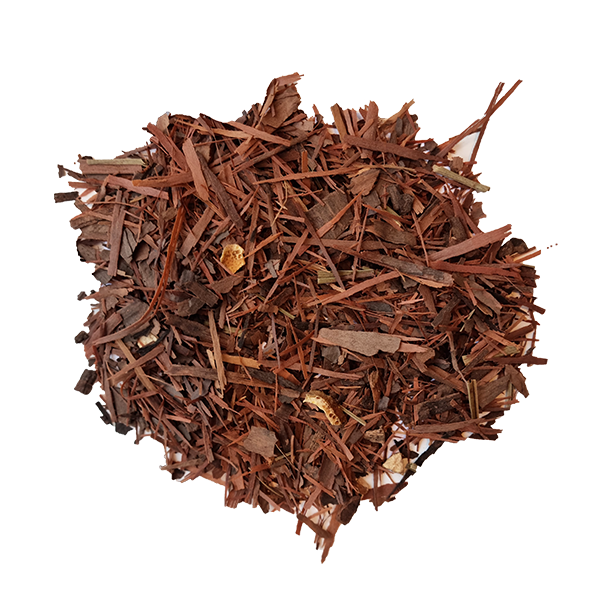 Lapacho komt is de bast van de “Levensboom” uit Zuid Amerika. Lapacho thee heeft een mild aroma wat doet denken aan vanille. Dit samen met sinaasappel is een topcombinatie. Deze thee is cafeïnevrij.