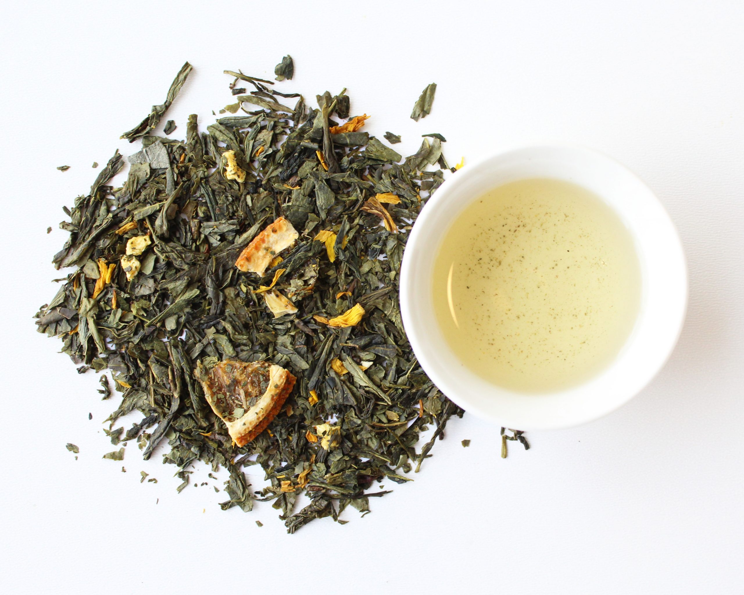 Zin in een zonnetje? Drink dan de Sunny Citrus. Een groene thee met sinaasappel, citroen, abrikozen en zonnebloem.